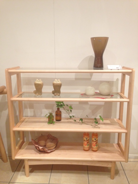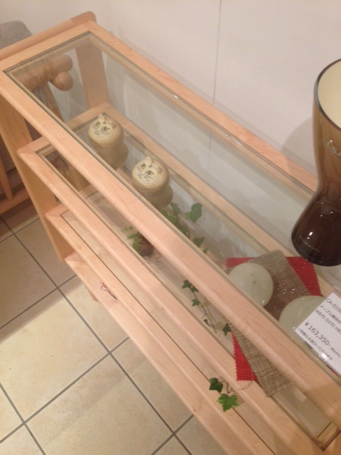 展示品のように、ガラスと木製棚を合わせてお使い頂く事も出来ます。
