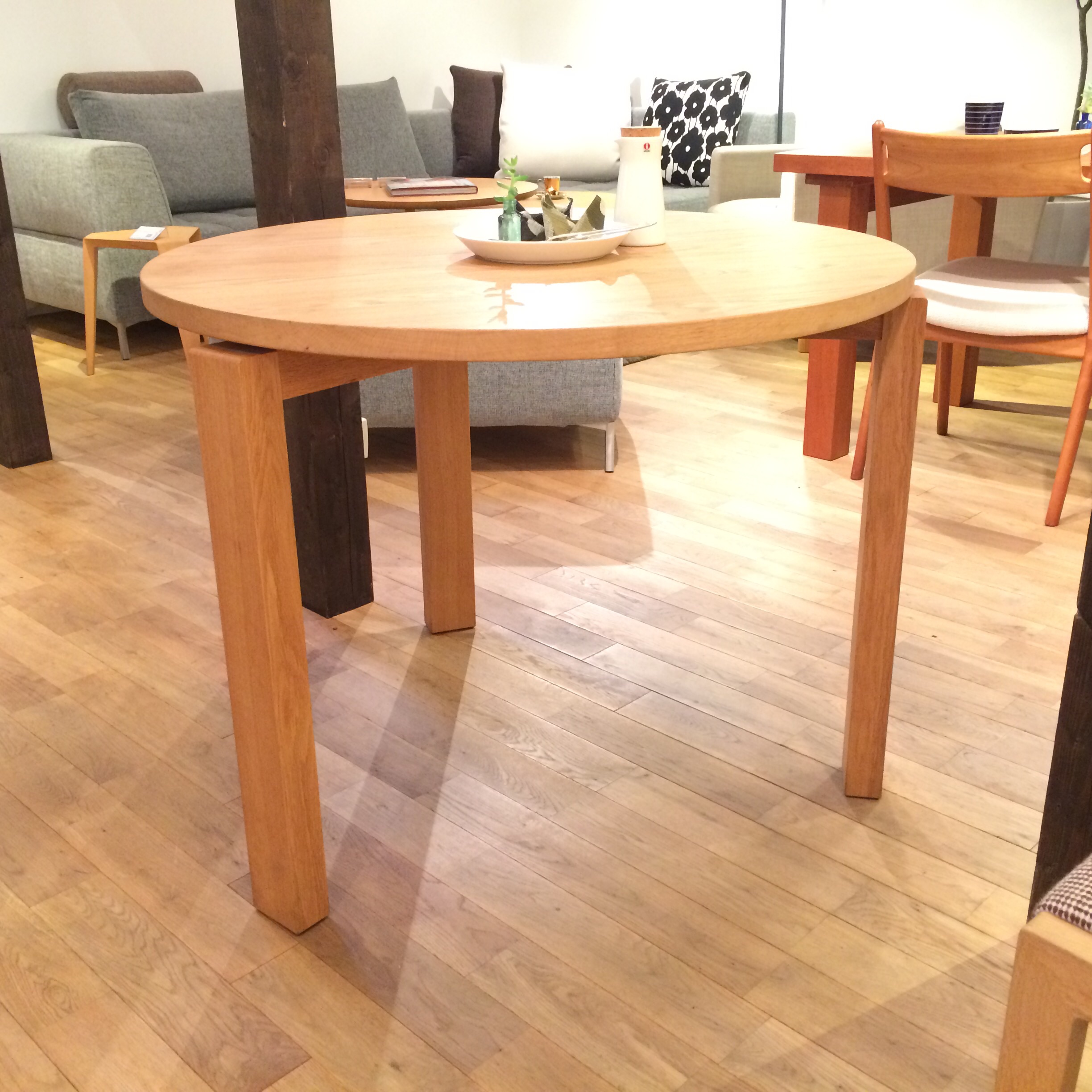 ダイニングテーブルTA-0014は丸い天板に対し、四角い脚がちょこんと出っぱったデザイン。