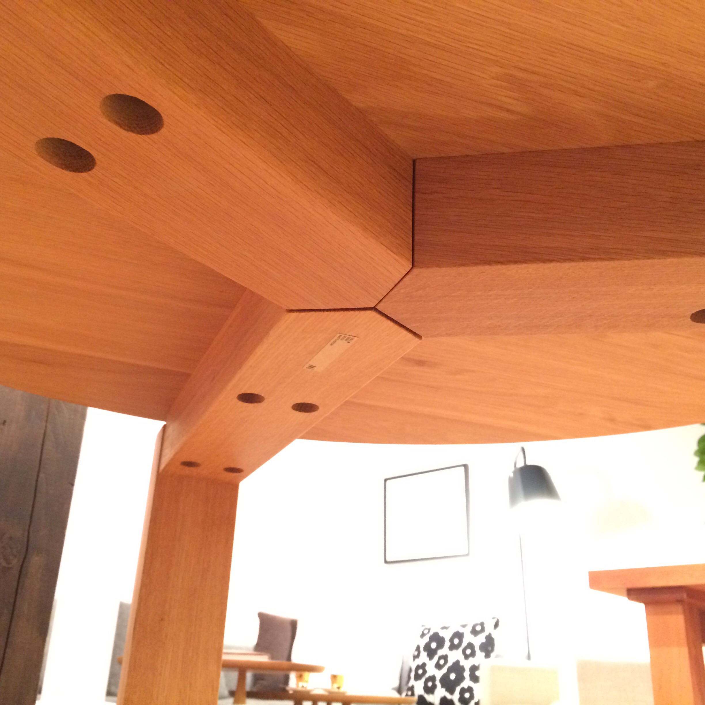 こちらのテーブルでの私が好きなポイントは天板裏の脚の接続です!