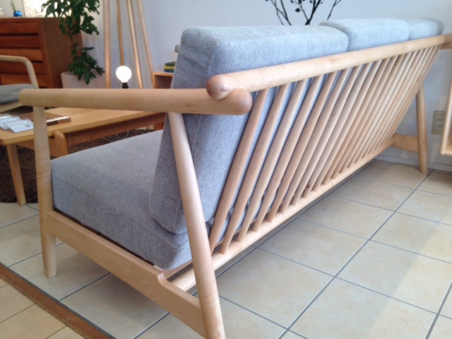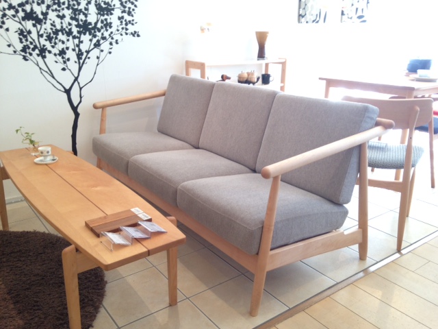 昨日ご紹介したものと同じ4本脚は内側に入っているのでソファを合わせることができ、