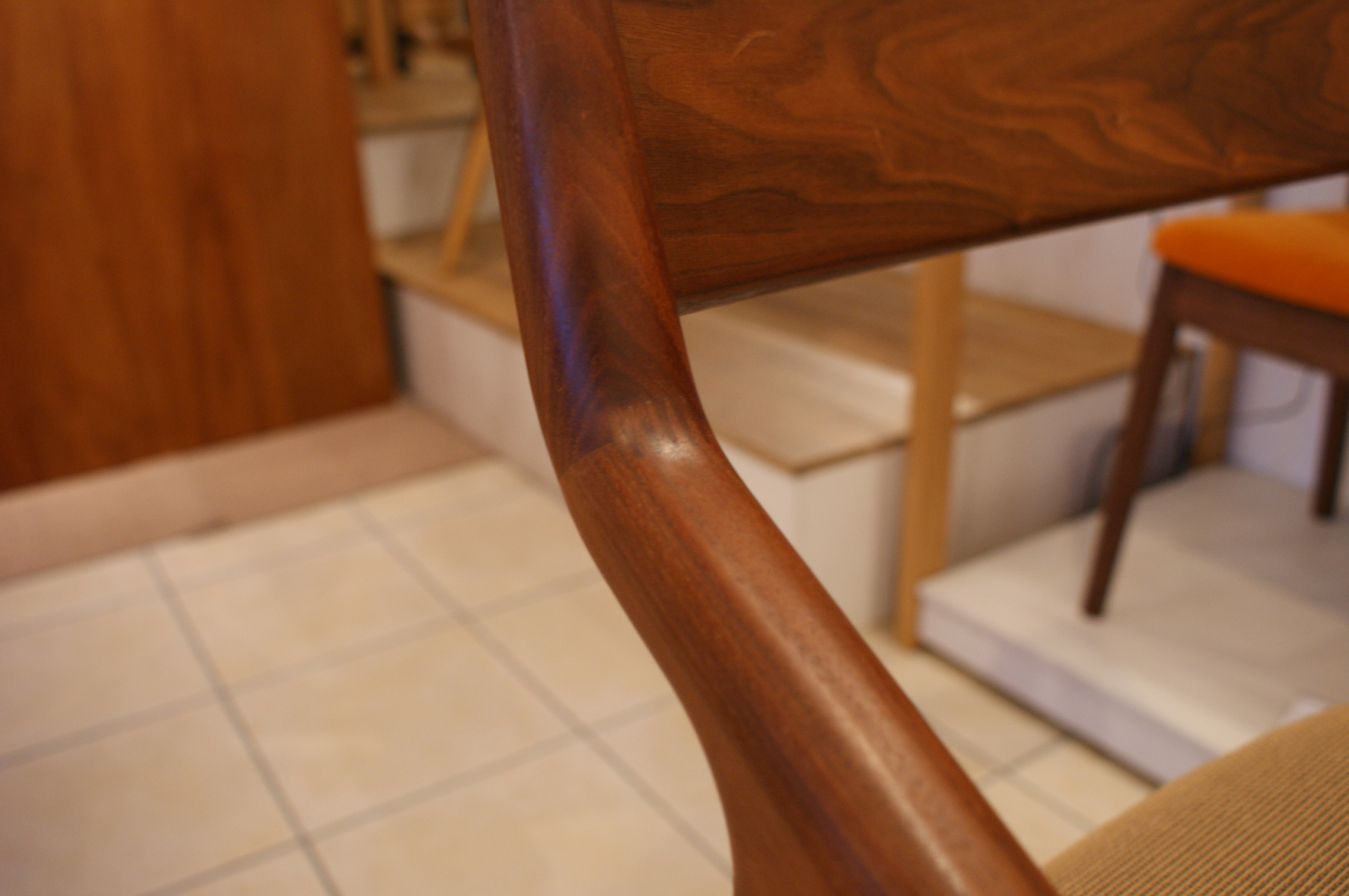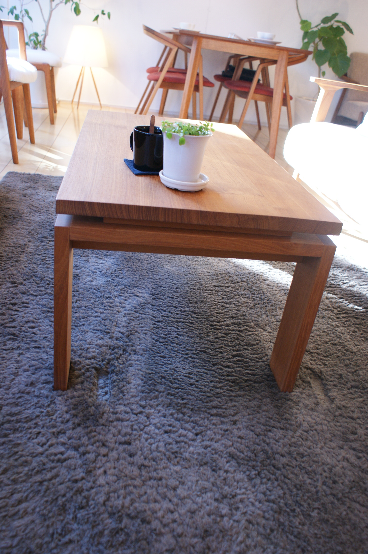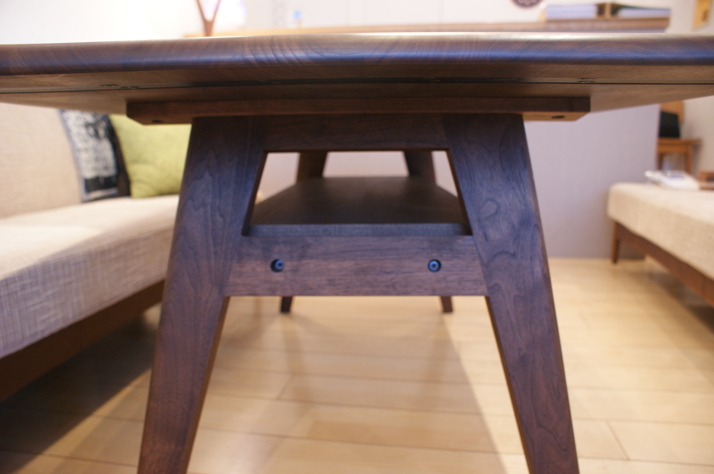 通常のダイニングテーブルより内側に入った脚は、外側に向かって斜めになっています。