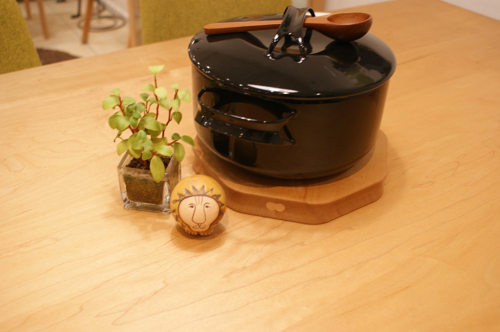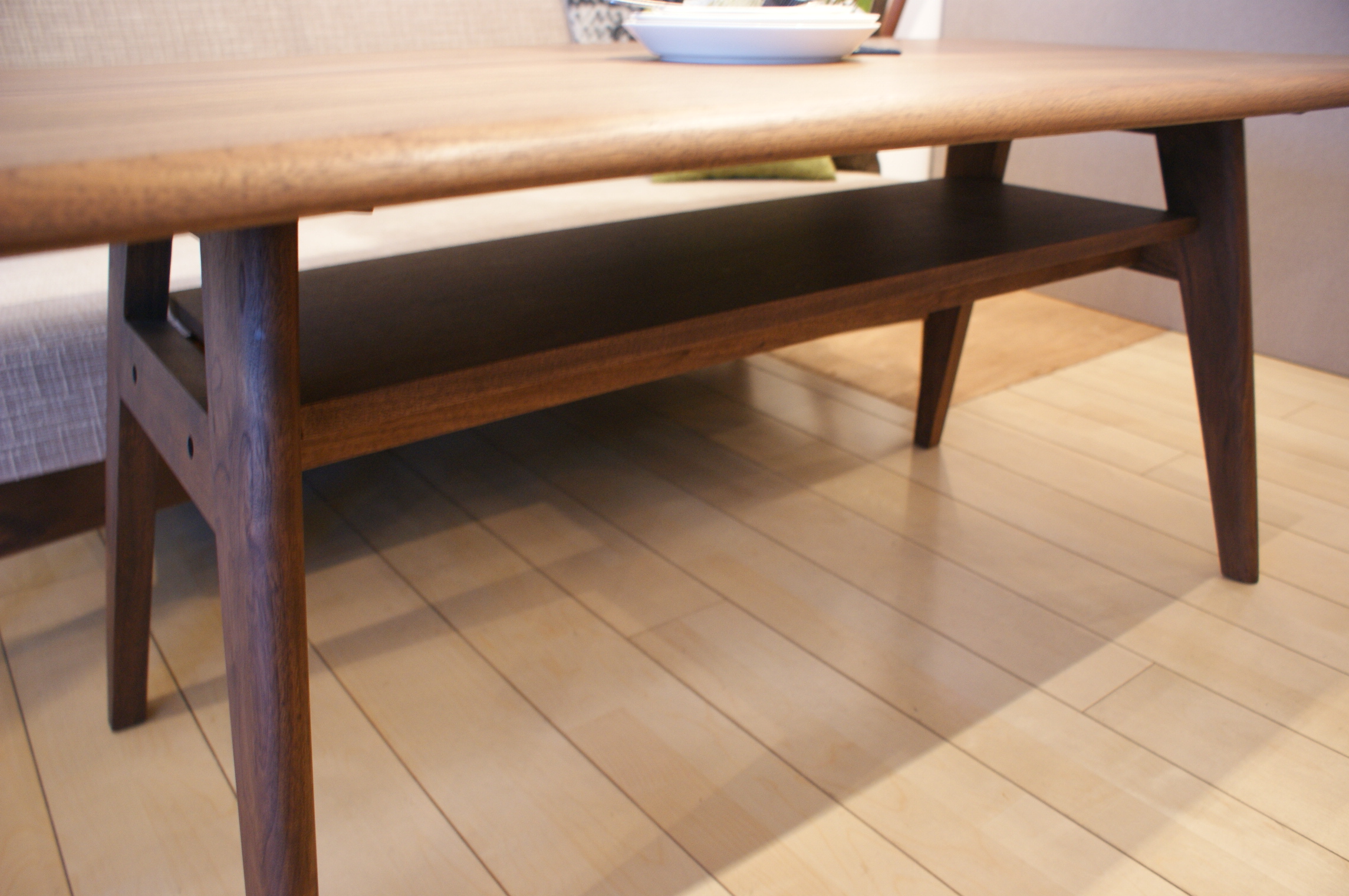 ダイニングテーブルに棚板がついて、さらに便利になりました。